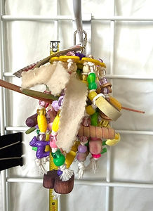 Vegetable Tanned Leather, Cotton Rope, Fleece, Food Colored Wood, Plastic, Acrylic, Nickel Plated Hardware